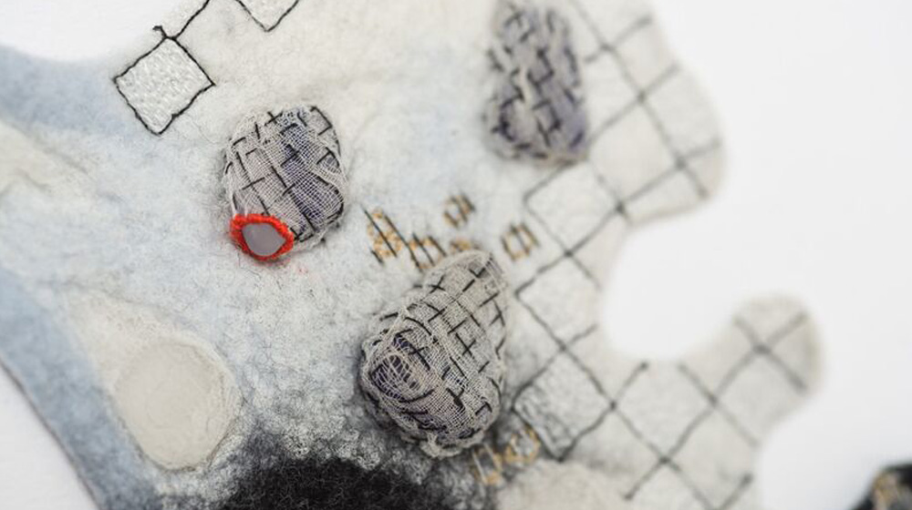 Da quando ero bambina, ho sempre trovato un senso di sicurezza nel disporre gli oggetti intenzionalmente. Separare gli oggetti portava un senso di ordine nel mio mondo interiore ed esteriore, che talvolta mi pareva caotico. Le strutture e i sistemi di organizzazione mi affascinavano. Mi piacevano in particolare i contenitori che per loro natura custodivano e proteggevano. Case, edifici, nicchie, ripostigli, cassetti, cesti e sacchi identificavano gli oggetti che custodivano come qualcosa di importante, scelto, onorato e degno di essere conservato. Lo stesso uso della fibra di lana, storicamente impiegata come materiale isolante e protettivo, suggerisce un senso di sicurezza fisica e mentale. Il processo di infeltrimento, invece, unifica il caos dei singoli elementi e può essere usato per racchiudere gli oggetti in una “pelle” protettiva di feltro. Non sono solita separare ciò che è fisico da ciò che è mentale nella mia esperienza umana o nel lavoro che faccio per esprimere quelle esperienze. Ho scoperto che sono strettamente interconnesse. Saper controllare una vasta gamma di tecniche, inclusi i modi per incorporare altri materiali e oggetti allo scopo di rafforzare il concetto che sta al centro di un’opera, fornisce un vocabolario visivo che mi permette di esprimermi più chiaramente.
