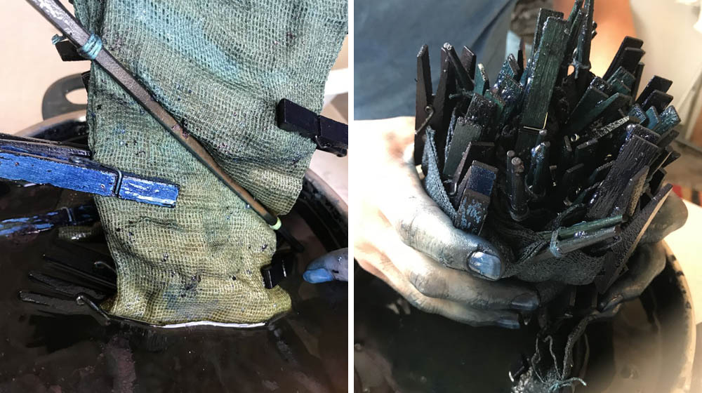 13 Adesso è il momento di rimuovere le bacchette di legno e le mollette e finalmente svelare il pattern.![]()