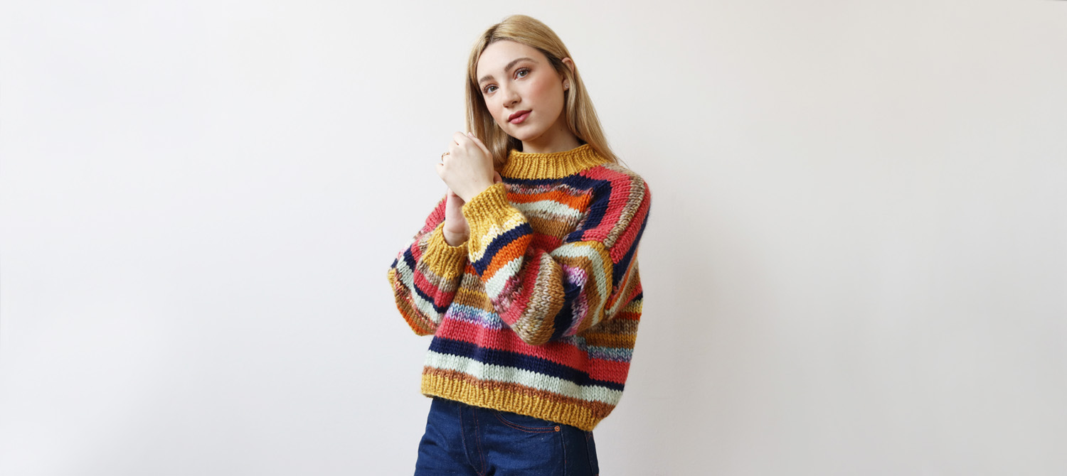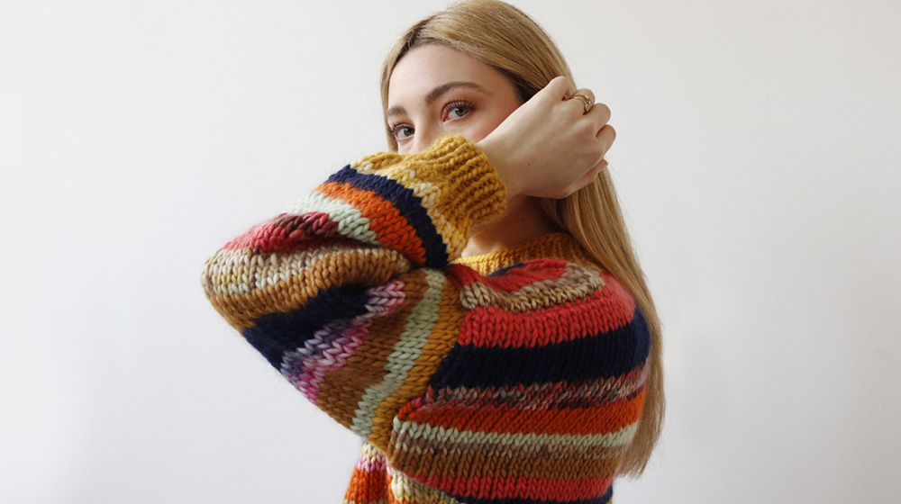 Per questo oggi ti proponiamo l’idea per un maglione realizzato con il nostro filato Piuma in pura lana merino e certificato Oeko-Tex che, per essere ancora più sostenibile, è stato fatto con le sole rimanenze. Ne è venuto fuori un pezzo free style davvero figo!