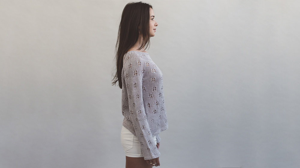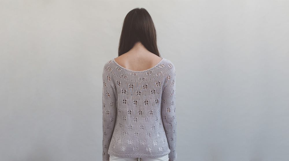 Il secondo pezzo realizzato dalle Knitting For Breakfast è una maglia top down leggera leggera, quasi impalpabile. Traforata, a maniche lunghe e con scollo a barchetta.