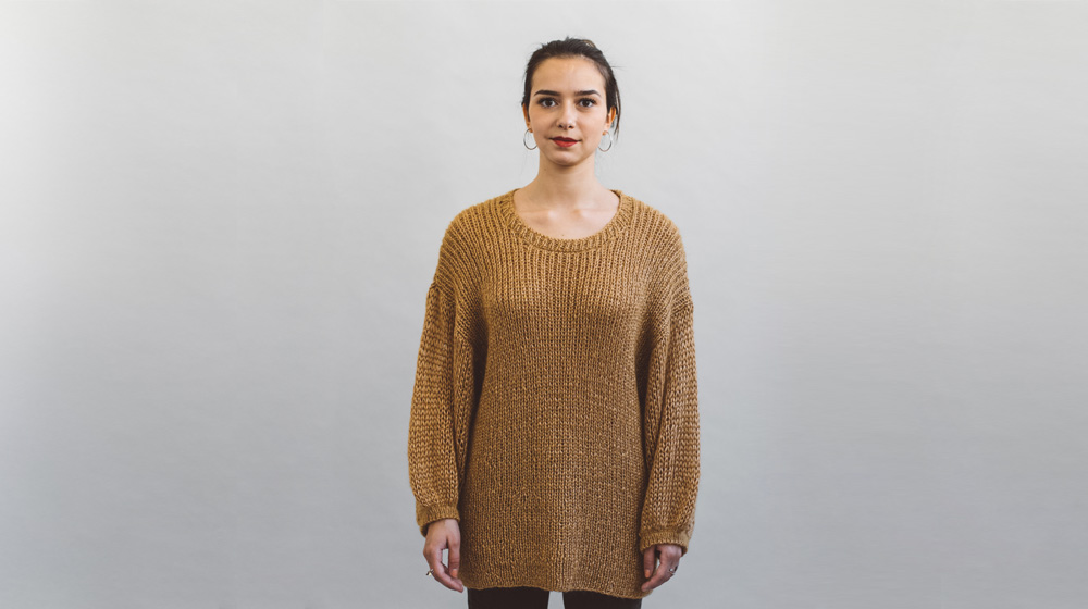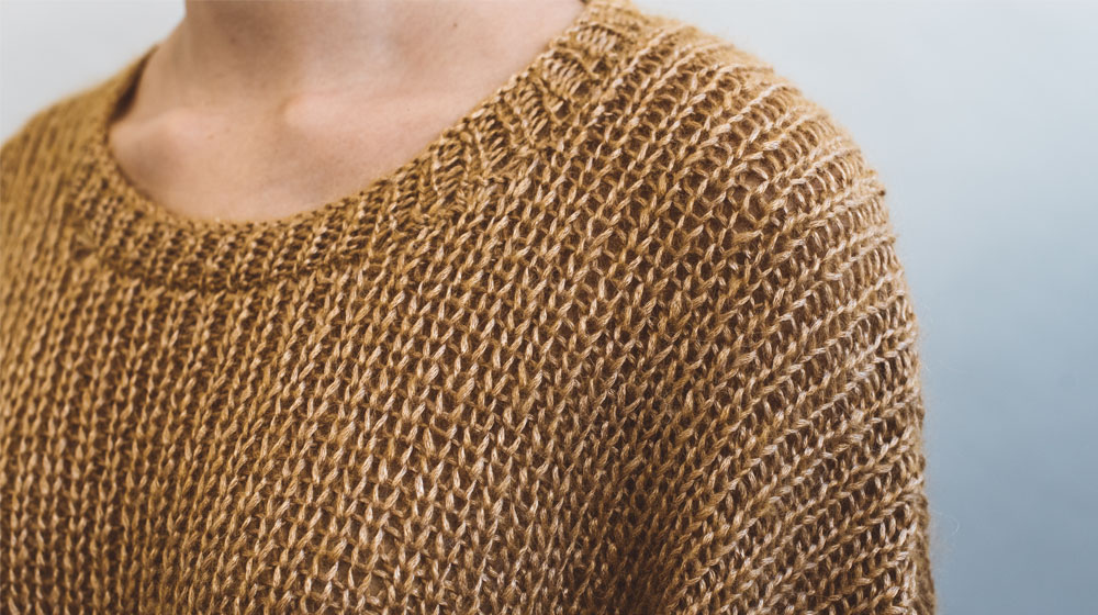 Per donare maggiore vivacità a questo maglione abbiamo scelto un color Oro, mentre per lavorarlo avrete bisogno di ferri e del filato Hokusai.