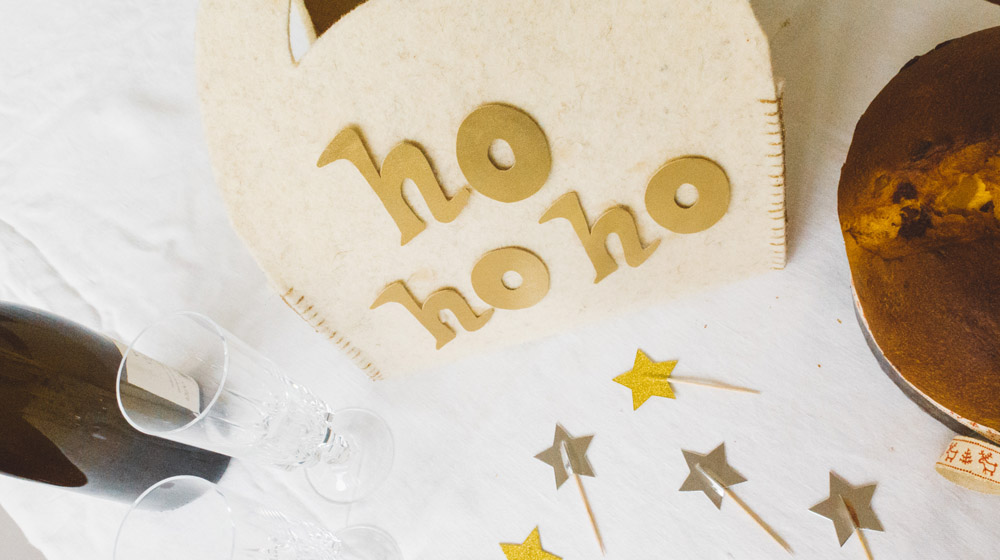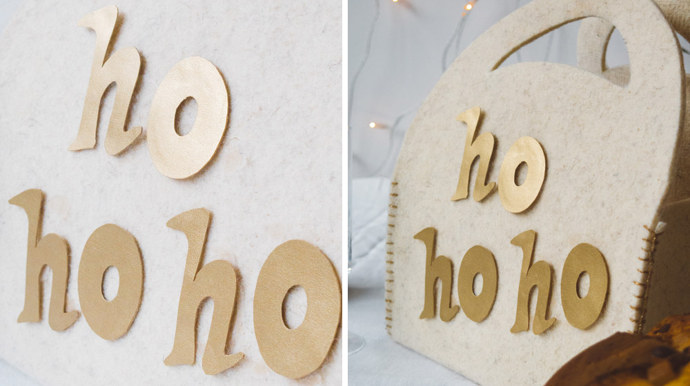 Noi abbiamo scelto di personalizzare il porta panettone in feltro con una delle scritte più tradizionali, ovvero l'ormai mitico "ho ho ho" di Babbo Natale. Ma ci sono altre mille scritte carine con cui decorarlo, magari anche il nome del destinatario del panettone.