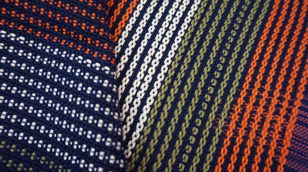 "Ispirata dalla lana merino DHG, con cui avevo lavorato in precedenza, ho deciso di filarla in filato pettinata ed anche di tesserla non filata. Ho creato l’ordito utilizzando il filato di cotone Lincoln per poi inserirvi il quadro che caratterizzano il mio lavoro. Io creo quadri di tessuto con tele che tesso a mano ed il filato di cotone Lincoln mi ha ispirato ad incorporare dei motivi di tessitura tradizionali che si sposano con il mio disegno tessile astratto. E, grazie ai miei strumenti di lavoro, i colori ispirati all’Autunno e la scala si uniscono in un wall hanging non convenzionale".