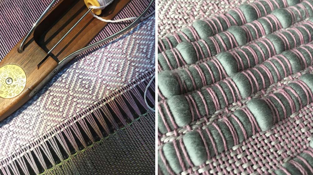 Avevo in mente di utilizzare questi materiali per un wall hanging – una sorta di tappezzeria, ma sapevo che l’idea mi sarebbe venuta una volta avuto il materiale con il mio telaio e fuso.