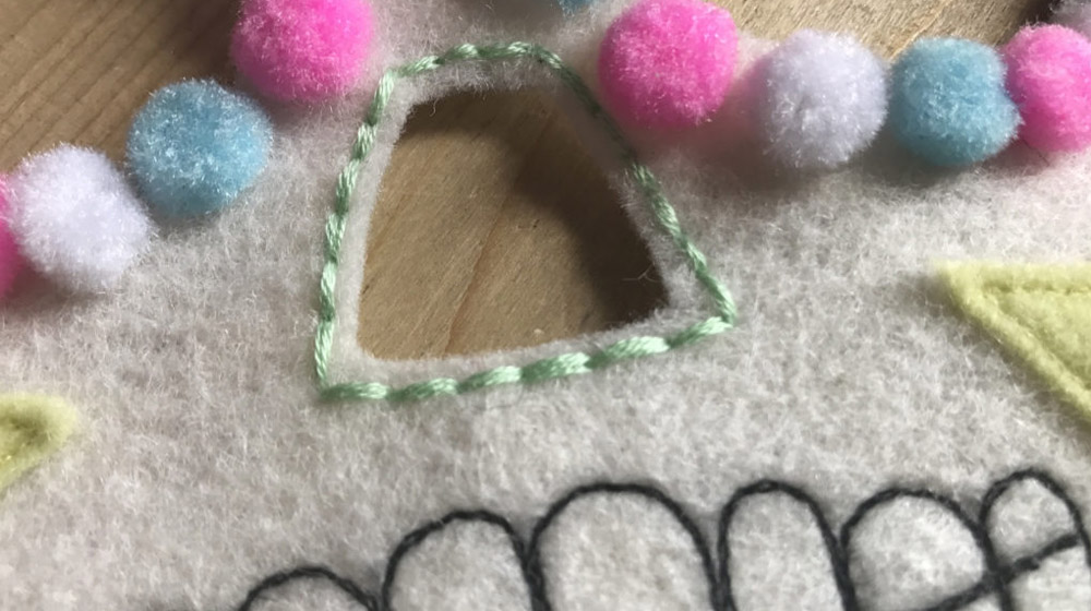Добавьте ещё немного цвета, вышив контур носа бирюзовым цветом. Используйте простой шов.