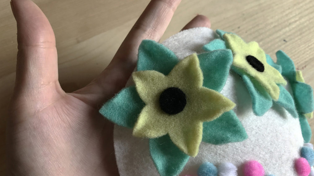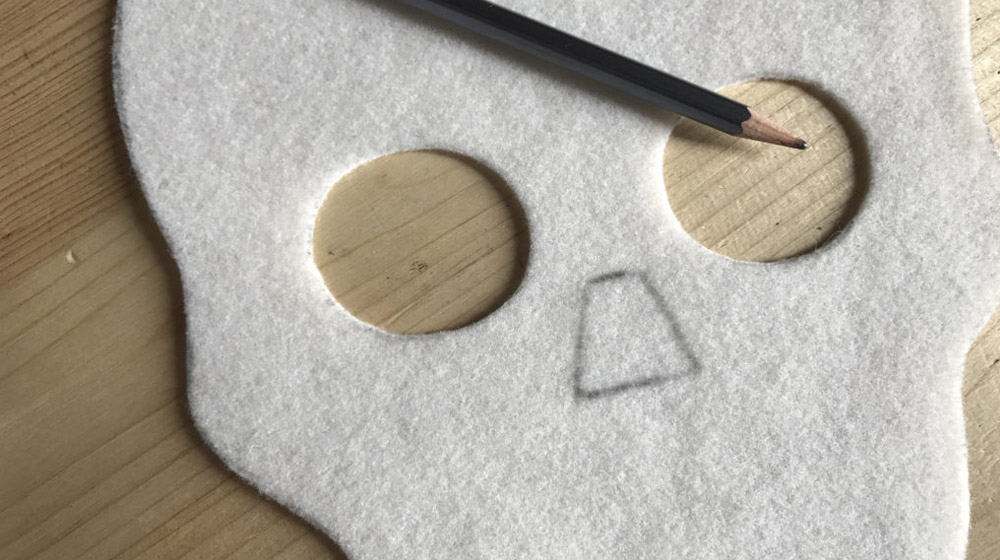 Особенность термопластичного фетра состоит в том, что посредством тепловой обработки его можно моделировать. Охлаждённый фетр держит форму, приобретённую во время выпечки. Мы воспользуемся этой техникой, чтобы придать объём цветам на лбу черепа. Приступим!
