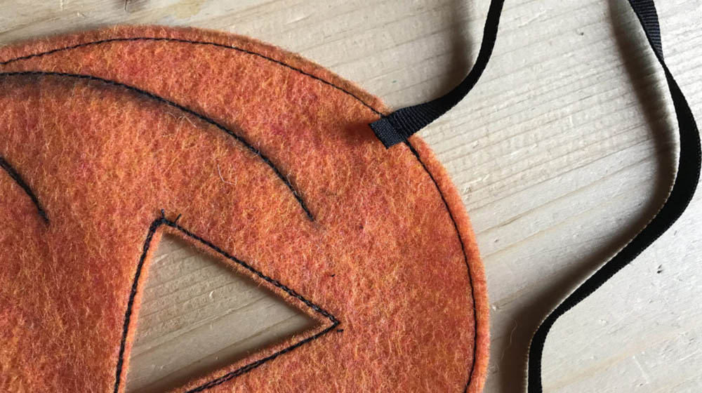 Маска почти готова, достаточно пришить две ленты с двух сторон тыквы.