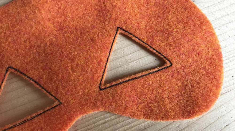 На швейной машине прострочите чёрной ниткой контуры двух вырезанных треугольников. Как вариант, вы можете сделать швы вручную толстой ниткой мулине.