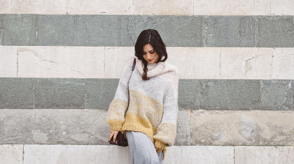 Сегодня отмечается Sweater Day. Как я и обещала, вот инструкция по созданию свитера, которую мы специально подготовили по этому случаю. Это свитер с горлом в стиле oversize. Мягкий и тёплый, он спасёт даже в самую суровую погоду и вам необязательно будет повышать температуру дома. Вы будете одеты по моде с заботой об окружающей среде.