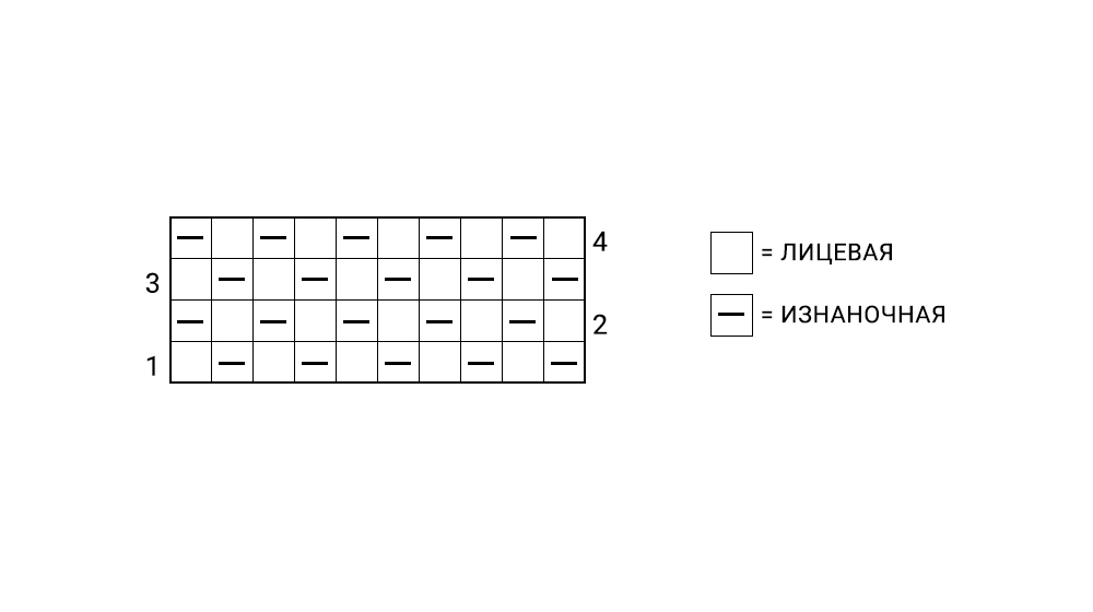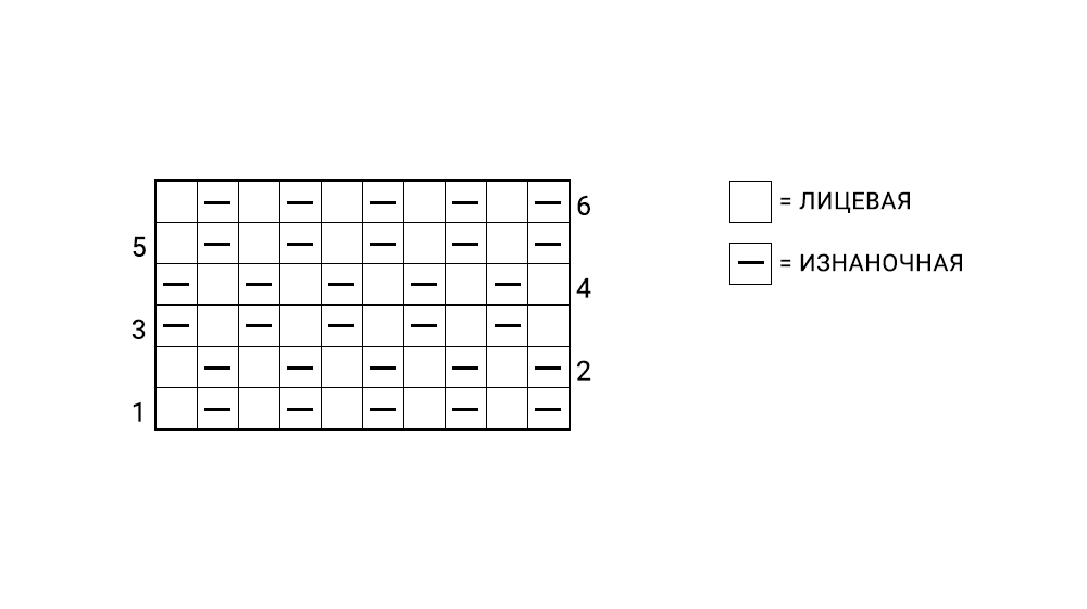 Необходимо набрать нечётное количество петель. Узор двусторонний.