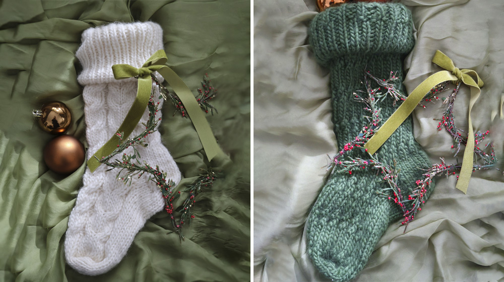 Туториал по вязанию трёх рождественских носков спицами