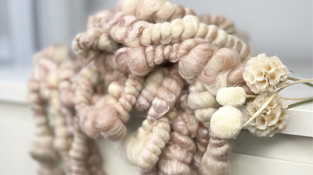 Для нас Сэми сделала вдохновляющую коллекцию художественной пряжи, используя некоторые наши волокна. Результат говорит сам за себя.