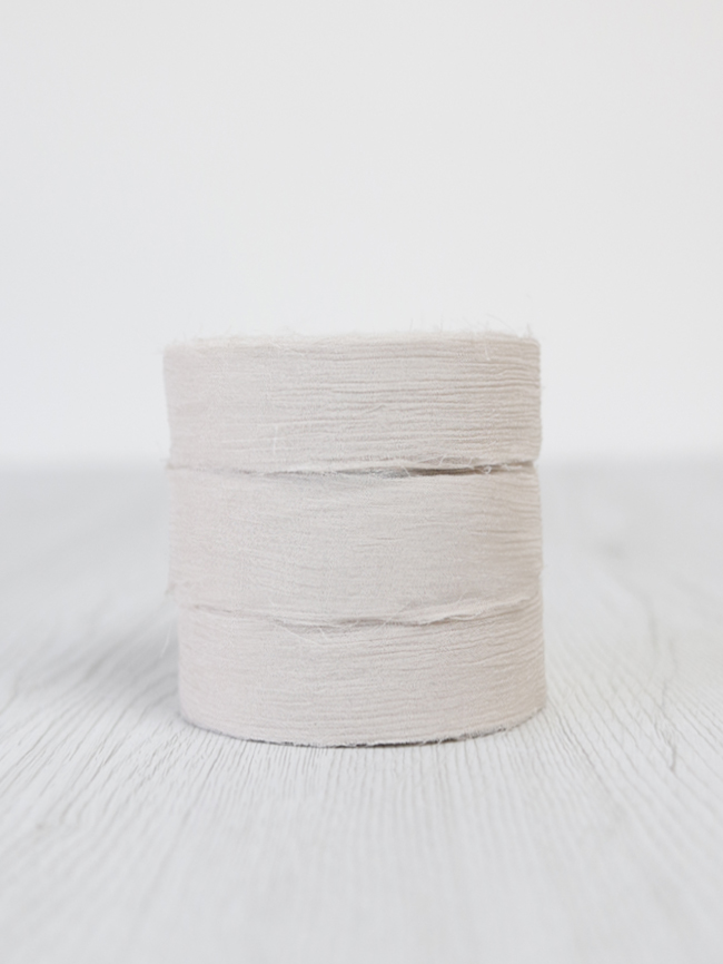 The surface is characterized by light creases that give a three-dimensional look and texture and the edges are live and slightly frayed. The DHG chiffon crinkle ribbon is therefore a product that combines two characters: one more elegant and one more casual. This is why it becomes truly chameleon-like and suitable for many different occasions.