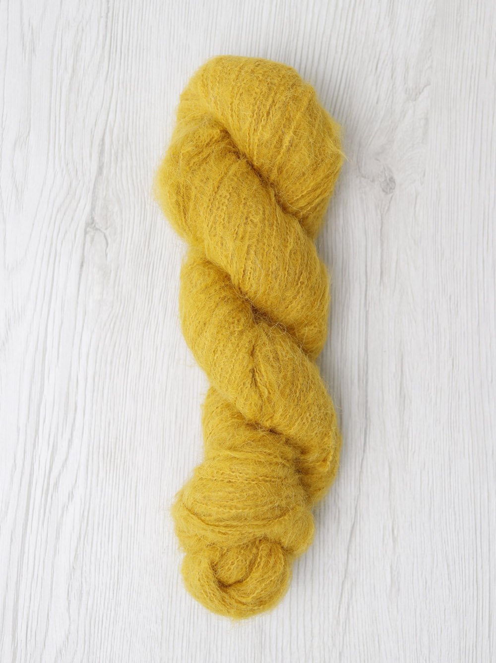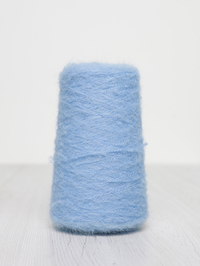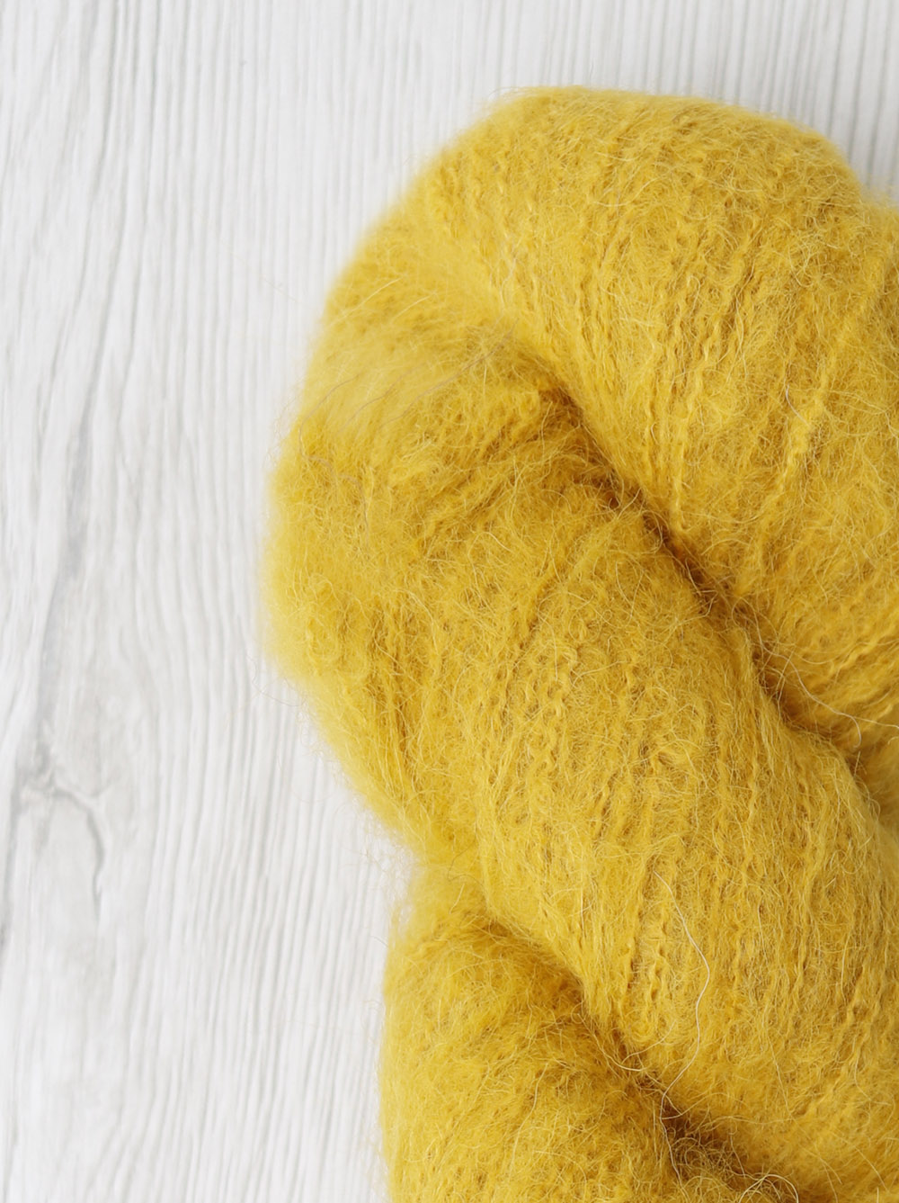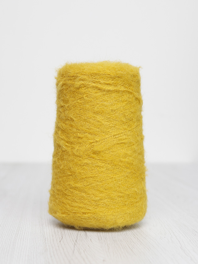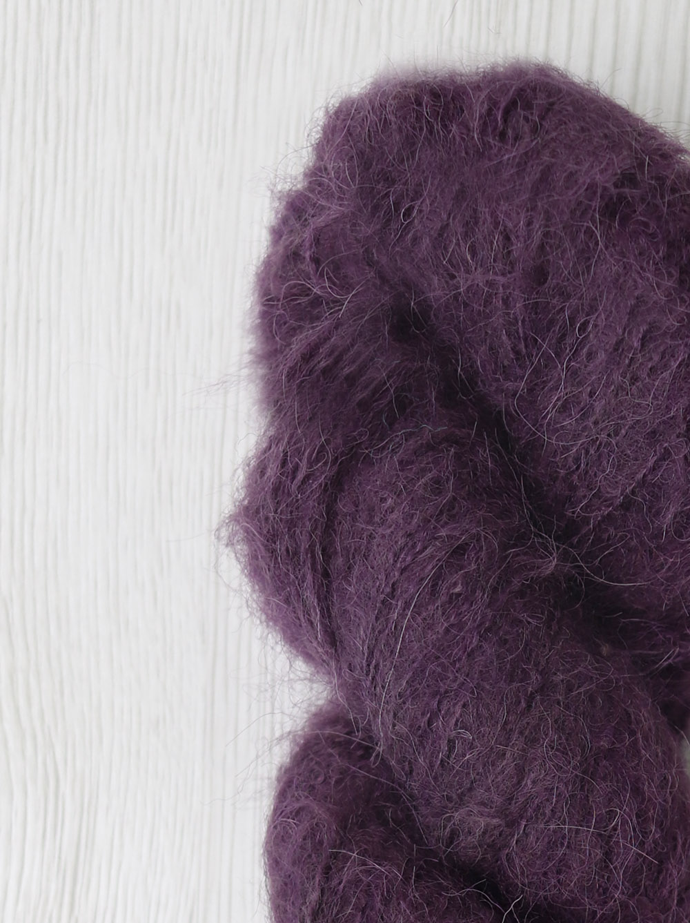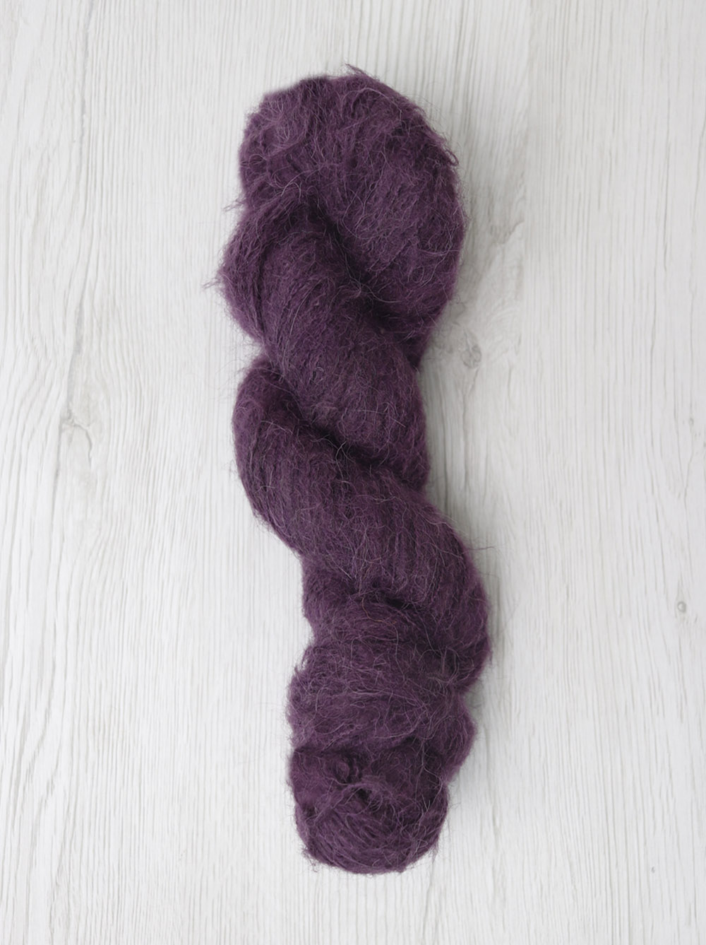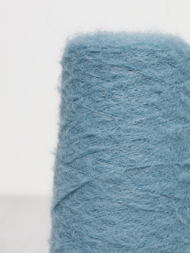Cumbria is an alpaca yarn crafted from three twisted strands. Two ultrafine threads form the core, while a third, super-thin, fuzzy, and almost ethereal strand adds a voluminous, cotton-candy-like texture. This third alpaca strand determines the varying thickness of the entire yarn, depending on the concentration of its fluffy component. The resulting yarn has a firm structure but is also soft, thanks to the natural suppleness of alpaca fibers. Its slightly irregular volume, silky texture, and smooth glide make it a pleasure to work with.