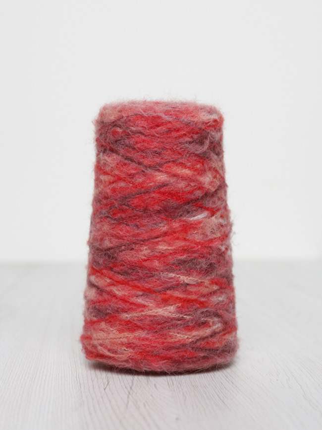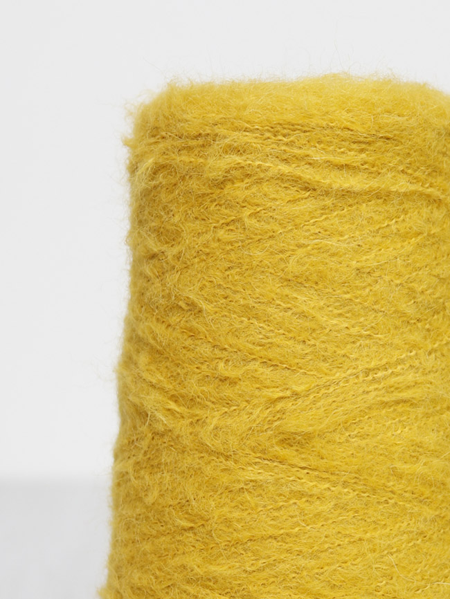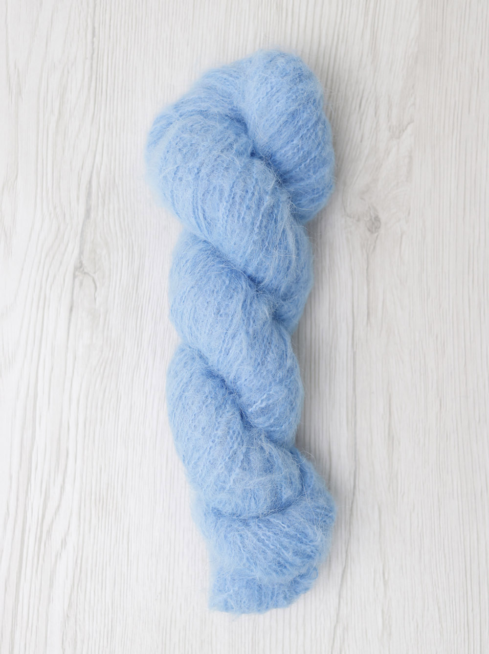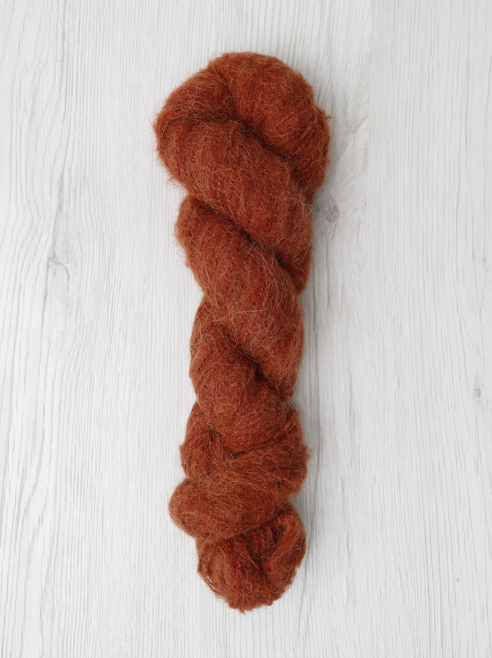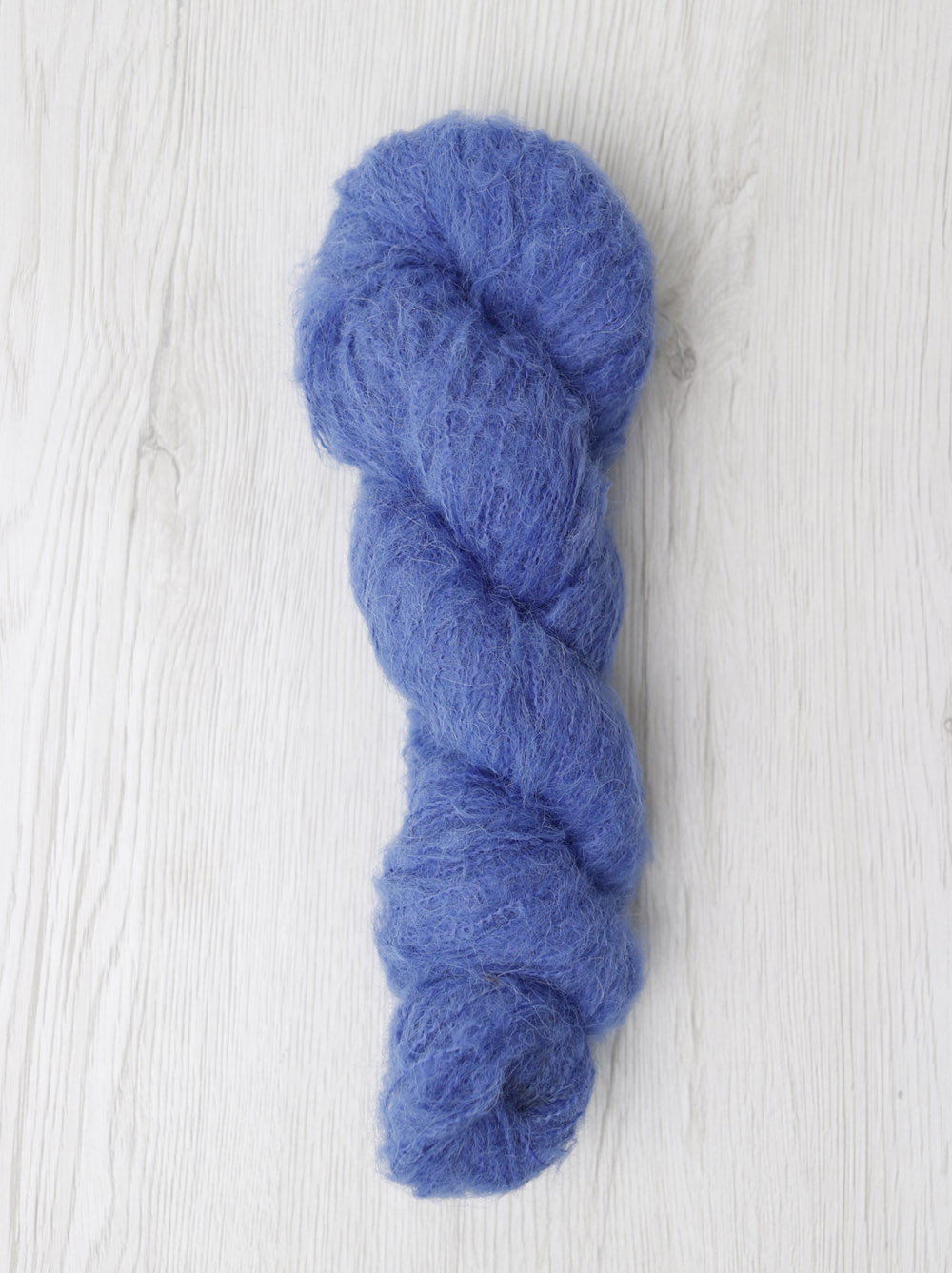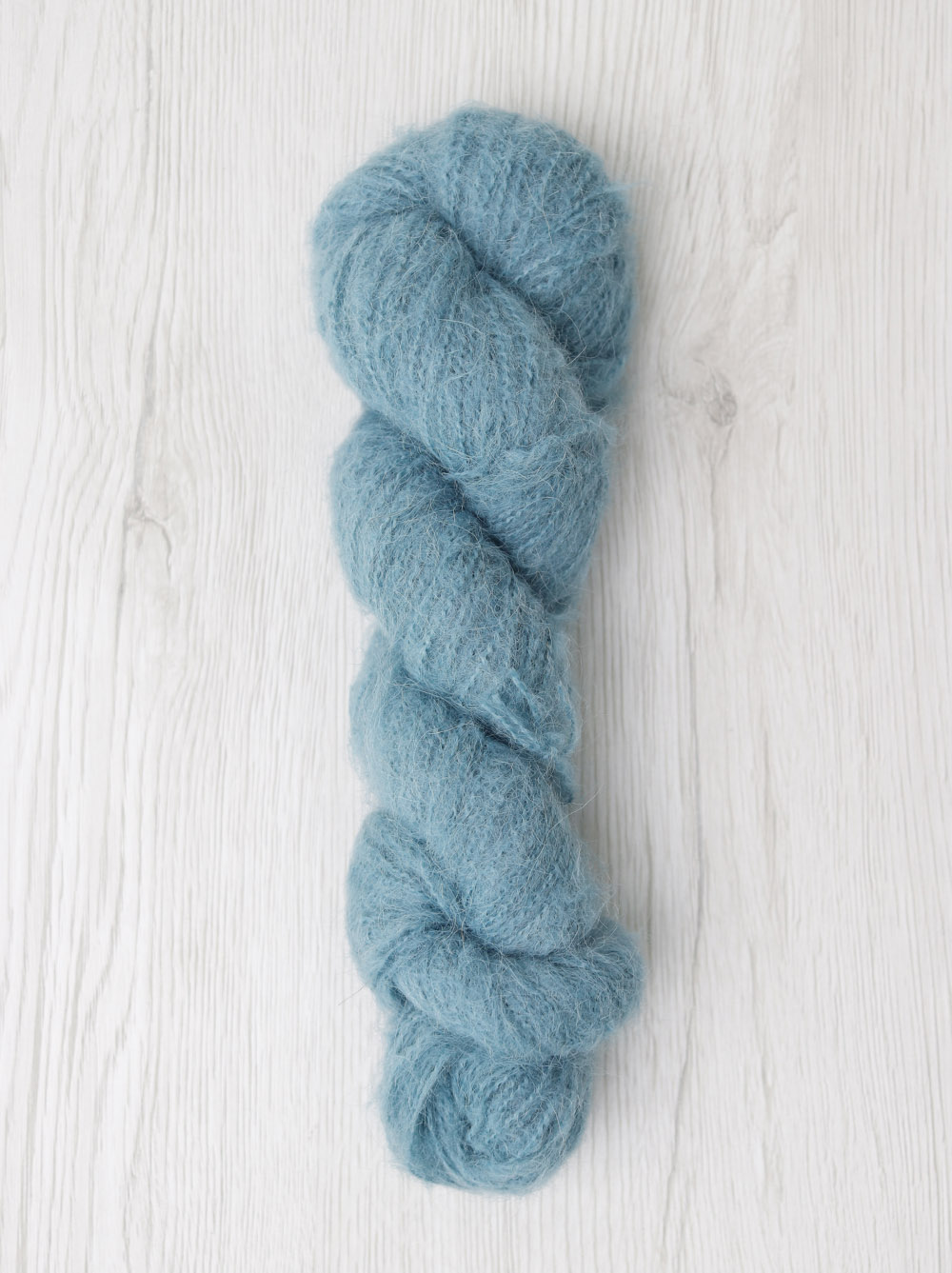 Cumbria is an alpaca yarn crafted from three twisted strands. Two ultrafine threads form the core, while a third, super-thin, fuzzy, and almost ethereal strand adds a voluminous, cotton-candy-like texture. This third alpaca strand determines the varying thickness of the entire yarn, depending on the concentration of its fluffy component. The resulting yarn has a firm structure but is also soft, thanks to the natural suppleness of alpaca fibers. Its slightly irregular volume, silky texture, and smooth glide make it a pleasure to work with.