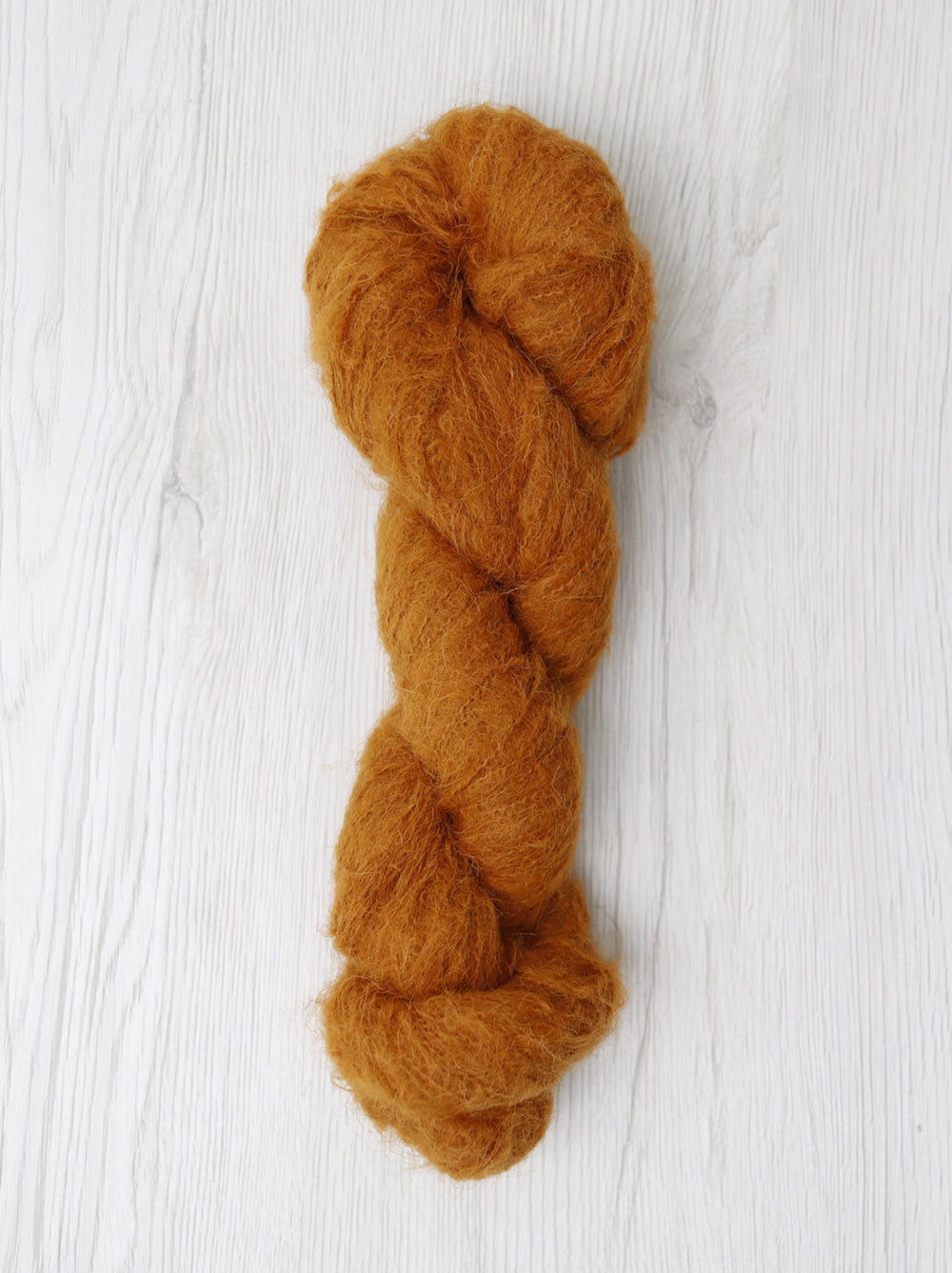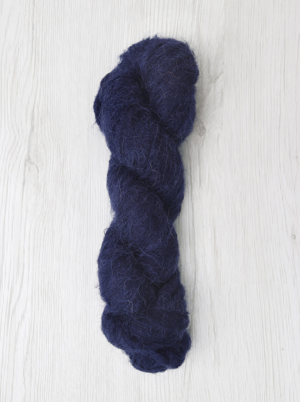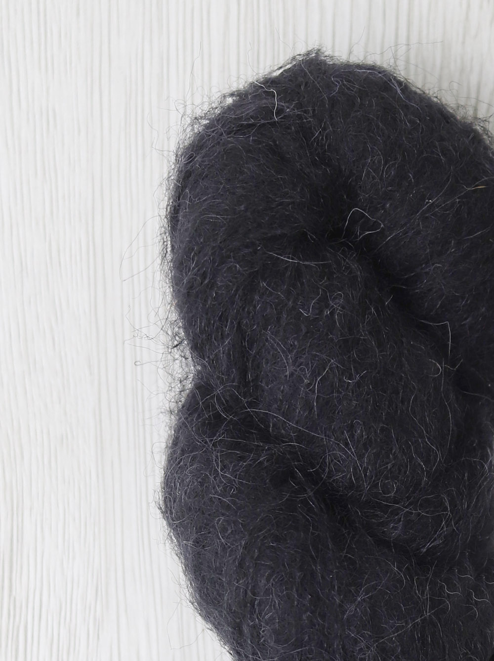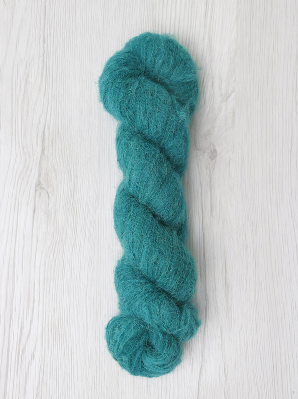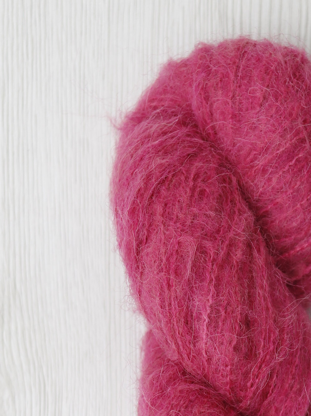 Cumbria is an alpaca yarn crafted from three twisted strands. Two ultrafine threads form the core, while a third, super-thin, fuzzy, and almost ethereal strand adds a voluminous, cotton-candy-like texture. This third alpaca strand determines the varying thickness of the entire yarn, depending on the concentration of its fluffy component. The resulting yarn has a firm structure but is also soft, thanks to the natural suppleness of alpaca fibers. Its slightly irregular volume, silky texture, and smooth glide make it a pleasure to work with.