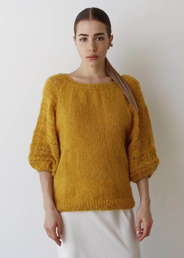 With knitting needles: stockinette stitch, ribbing, and bold, textured patterns work best, as the fluffy yarn can obscure intricate details. Despite its softness, Cumbria’s structure ensures even edges and neat margins.