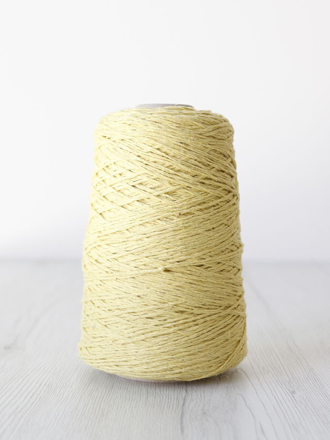 On the loom: we wove this yarn on a rigid heddle loom with a 32:10 reed (3.2 ends/cm). Can be used as both warp and weft. Easy to work with. The hand is dry but pleasant. Suitable for garments as well as home accessories like placemats, runners, and cushions.